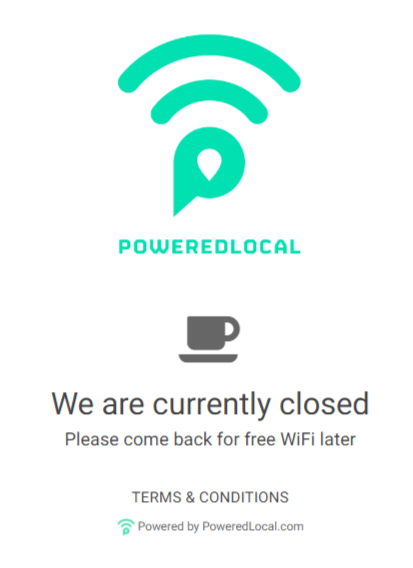 To restrict access to your WiFi outside of your trading hours, do this through your PoweredLocal Dashboard.